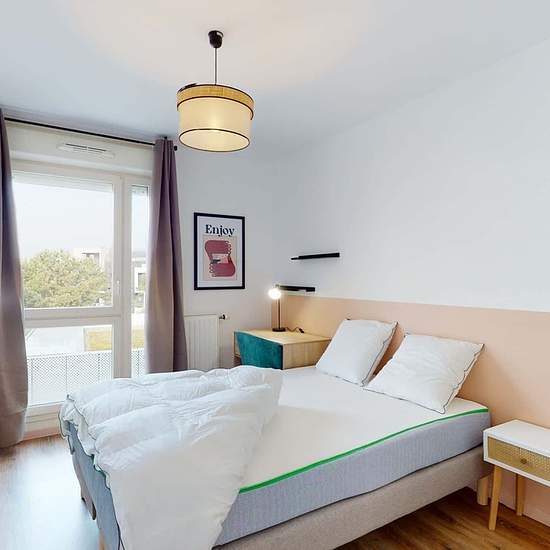 This spacious and comfortable room has been designed for you dear roomie! Practical and functional, the room is equipped with high quality bedding (140x200cm), a beautifull wardrobe, a night table and a true office space for your exams or your home office days! All of this in a cheerful and warm atmosphere. In addition, you have access to a shared bathroom and a shared balcony. Beautiful flatshare in Bordeaux ! Discover Bordeaux Québec, our cosy and freshly renovated contemporary-style apartment. Close to local shops and restaurants, it ...