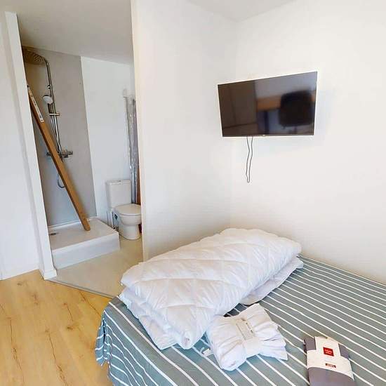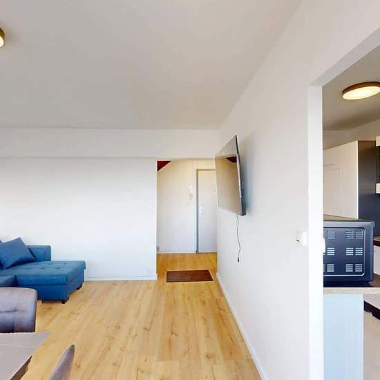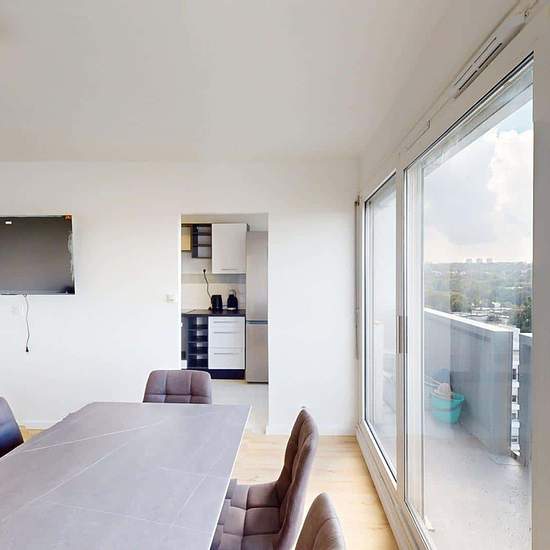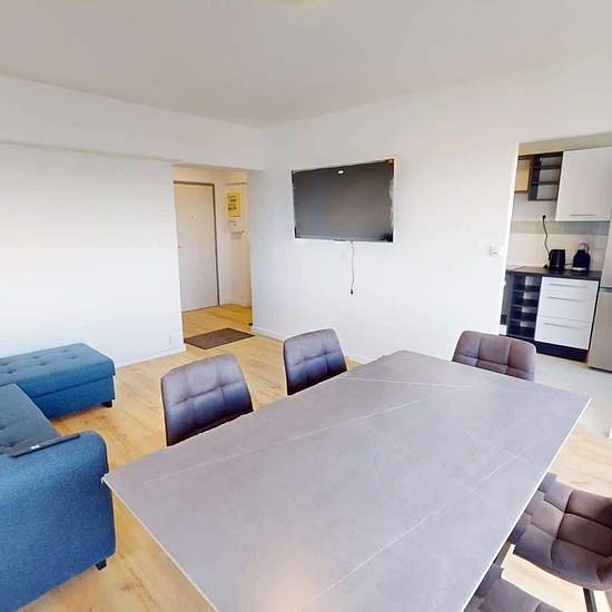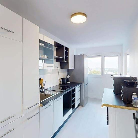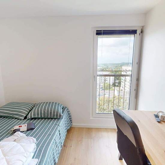 Oqoro vous présente cette colocation en duplex de 4 chambres, d’une surface de 100 m², située au 2 rue d’Anjou à Brest. LES ESPACES COMMUNS La pièce de vie est aménagée avec un canapé d’angle, une télévision murale et une table à manger avec 5 chaises. Elle s’ouvre sur un balcon offrant une vue dégagée. La cuisine, entièrement équipée, dispose d’un four, d’un micro-ondes, de plaques de cuisson, d’une hotte, d’un évier, d’un réfrigérateur avec compartiment congélateur, d’une machine à laver, d’un sèche-linge, d’une bouilloire, d’une machine ...