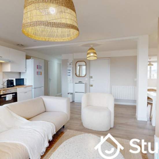 1 chambre(s) libre(s) dans une colocation de 1 chambres dans un appartment de 81m2 COLOCATION "ANATOLE FRANCE F" – CLERMONT-FERRAND Logement proche de toutes commodités : commerces, gare ferroviaire, Poste, CHU à 4min en vélo. La colocation entièrement refaite à neuf fin 2023 au 4ème étage sans ascenseur, offre 81,53m² de surface répartis ainsi : - Séjour/cuisine ouverte entièrement équipée avec un accès au balcon - 4 chambres avec leur salle d'eau privative (dont deux déportée) - 1 WC indépendant - 1 coin buanderie avec lave-linge/sèche-lin...