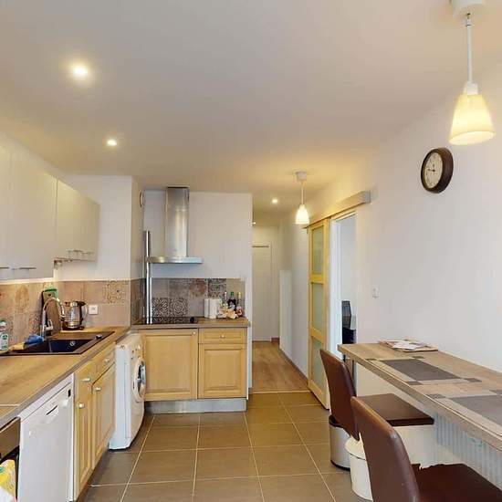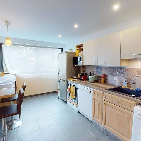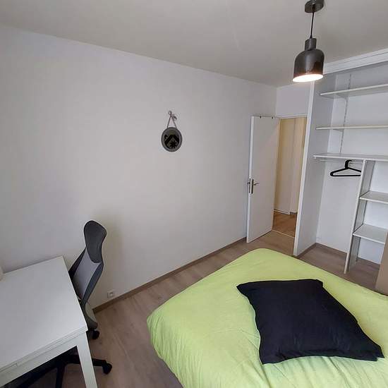 GRAND APPARTEMENT 5 PIÈCES À côté du tramway A, découvrez cette colocation de 4 chambres de 96 m² située au 24 Avenue Marie Reynoard (Grenoble, 38100). LA CHAMBRE La deuxième chambre de cette colocation est équipée d'un lit double, d'un bureau et une chaise. Le plus : un grand dressing privatif à cette chambre LES ESPACES COMMUNS Le logement comporte une grande pièce de vie très lumineuse, avec un coin salon meublé par un canapé, un meuble TV et une TV et d'un coin séjour/salle à manger avec une grande table et des chaises pour des moments...