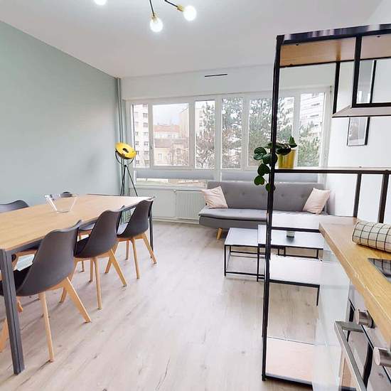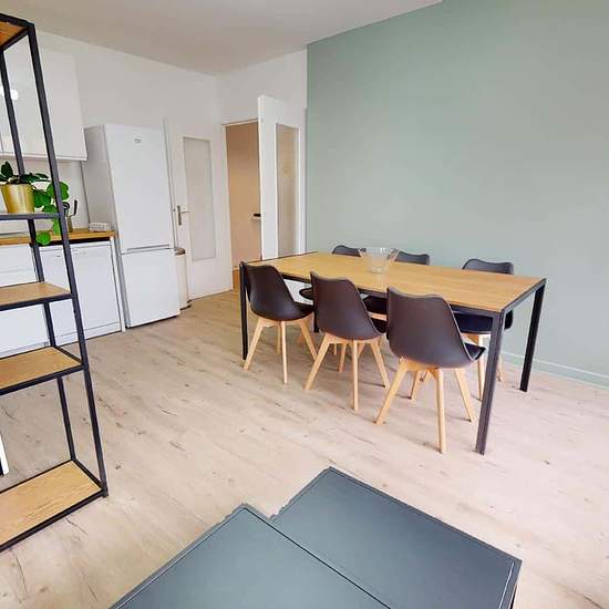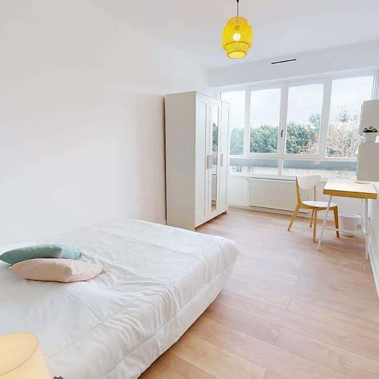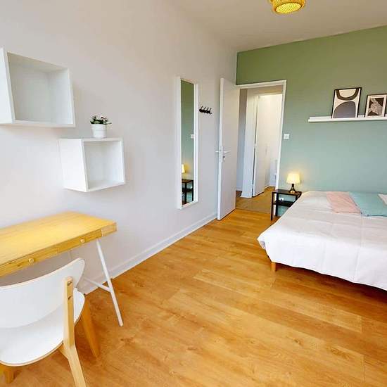 VERY LARGE 6-ROOM APARTMENT A few minutes from the Route de Vienne tram stop (line T2), discover at 64 rue du Repos in the municipality of Lyon (69007) this 5-bedroom shared apartment of 101 m². THE ROOM This large, bright room has a double bed with a bedside table and lamp, a desk with a chair, a small waste bin and lamp, a wardrobe with mirror, two shelving units and a full-length mirror. THE COMMON AREAS Located on the 2nd floor of a building with an elevator, this shared apartment opens onto a living area comprising a lounge with a sofa ...