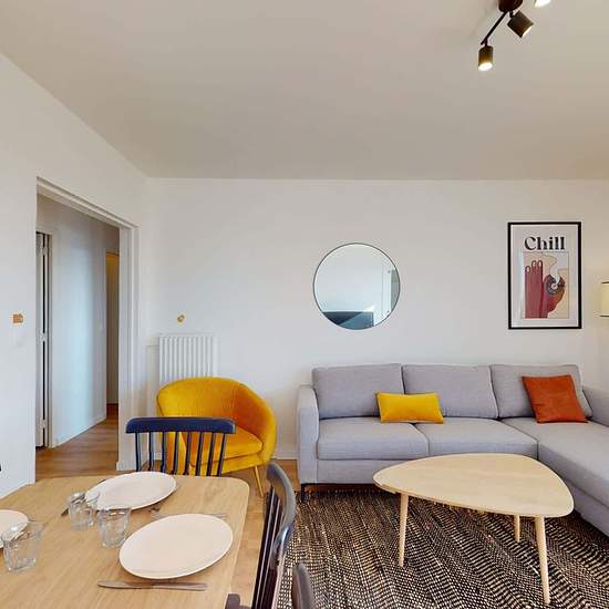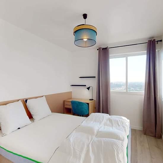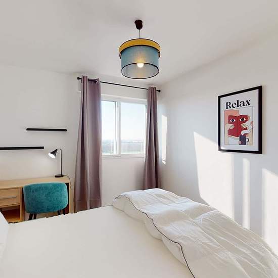 This spacious and comfortable room has been designed for you dear roomie! Practical and functional, the room is equipped with high quality bedding (140x200cm), a beautiful wardrobe, a night table and a true office space for your exams or your home office days! All of this in a cheerful and warm atmosphere. In addition, you have access to a shared bathroom. Beautiful flatshare in Nantes ! Discover Nantes Mandel 2, our cosy and freshly renovated contemporary-style apartment. Close to local shops and restaurants, it is easily accessible by ...