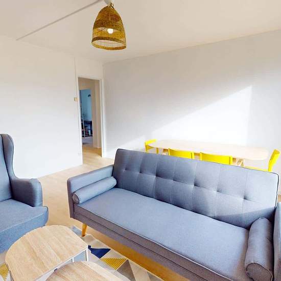 GRAND APPARTEMENT 5 PIÈCES Oqoro vous présente cet appartement de 4 chambres en colocation de 81 m² au 3 Rue Du Rossignol (Pessac, 33600). LA CHAMBRE La chambre est équipée d'un lit double, d'une table de nuit, d'un bureau, et d'une grande armoire. LES ESPACES COMMUNS Cet appartement de 5 pièces se compose de la façon suivante : Un salon avec un canapé, un fauteuil, une table à manger ainsi qu'une télévision et un meuble TV Une cuisine équipée d'un four, d'un micro-ondes, d'une machine à laver, d'un lave-vaisselle, d'une plaque de cuisson ...