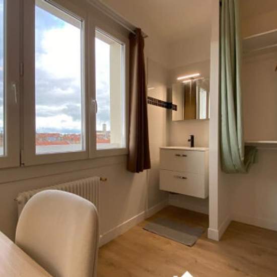 2 room(s) available in a 2-bedroom shared apartment in a 95 m² flat. Ideal location: a 7-minute walk from the train station and 5 minutes from the Boulingrin. Direct access to the tram, TGV and shops. Your future bright room combines comfort, practicality and privacy: • Hotel-style bed 140 x 190 cm with a "Privilège" mattress. • Large wardrobe and wall mirror. • Ergonomic desk for studying or remote work. • Private shower room with shower, vanity unit and toilet. • Lockable door, soundproofing and fiber internet included. High-end flatsha...