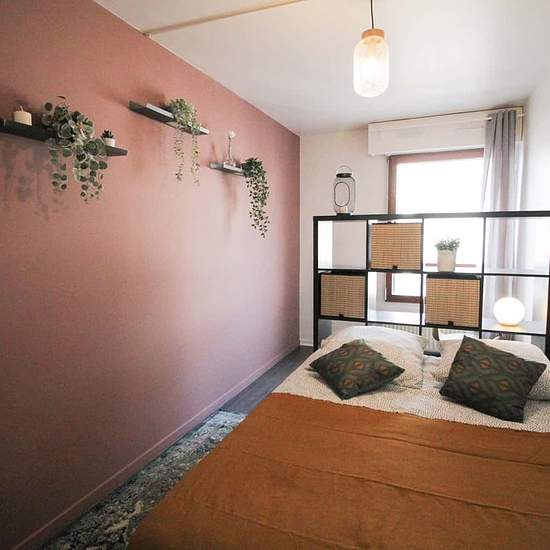 [FR] Chambre de 11m², entièrement meublée. Elle dispose d’un lit double (140x190) accompagné d'une table de chevet avec lampe. Un espace de travail est disponible, composé d'un bureau avec chaise et lampe. La chambre propose également plusieurs rangements : une armoire avec penderie et une étagère. Situé dans le quartier Les Martinets cet appartement de 90m² bénéficie d’un emplacement idéal, à deux pas du Parc des Impressionnistes et de la station de RER et à proximité de toutes les commodités. L’appartement se trouve au 6ème étage d’un imme...