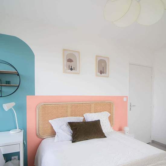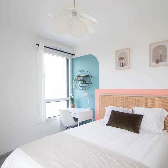 [FR] Découvrez cette chambre colorée de 11 m² à louer dans un appartement de 99 m² à Villeurbanne ! C’est au cœur d’un immeuble résidentiel, à quelques pas des commerces et de la ligne de métro A, que se situe cette chambre décorée dans des teintes saumon et vert céladon. Des couleurs fortes et pastel qui s’adaptent à votre style et délimitent les espaces nuit et de travail. Cette chambre louée toute équipée comporte également une belle armoire pour y ranger toutes vos affaires. C’est pourquoi nous vous facilitons la vie. Vous n’aurez pas à ...