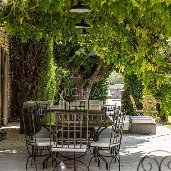A Gordes, sublime mas provençal du XVIIIe en pierre restauré avec raffinement et harmonie. Éblouissant parc paysager clos d'un hectare, planté de multiples essences méditerranéennes offrant le spectacle d'une très belle vue sur le Luberon. Magnifiques espaces de réception. 7 chambres climatisées, 6 salles d'eau. Terrasse couverte pour les repas d'été avec barbecue et belle terrasse au sud devant la façade. Piscine 12 x 6 m chauffée et son pool-house. Court de tennis.