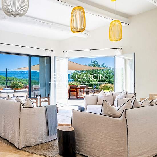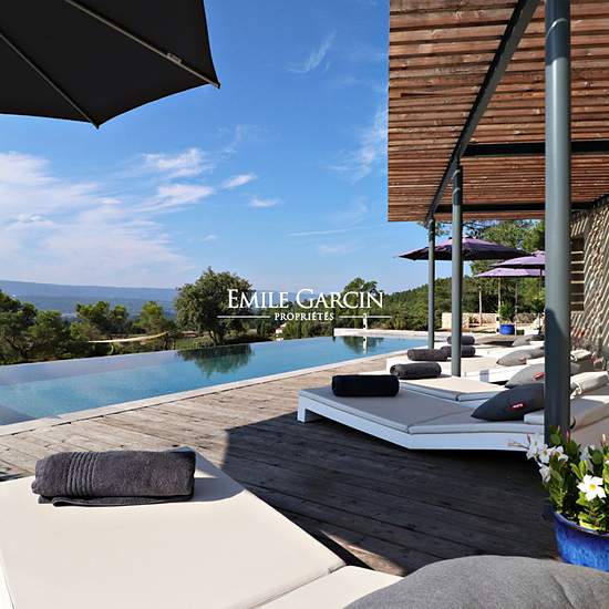 Suspendue au-dessus de la vallée du Luberon, la Villa Utopie porte bien son nom : un véritable sanctuaire de sérénité, caché du monde, où luxe et nature s'unissent en parfaite harmonie. Dès votre arrivée, l'immensité du paysage vous enveloppe, tandis que la piscine à débordement de 18 x 5 mètres semble se fondre dans l'horizon. Ici, le temps ralentit. Chaque pièce de cette villa d'exception de 560 m² a été pensée pour offrir un confort absolu, entre élégance contemporaine et touches provençales. La décoration soignée, les matériaux nobles et...