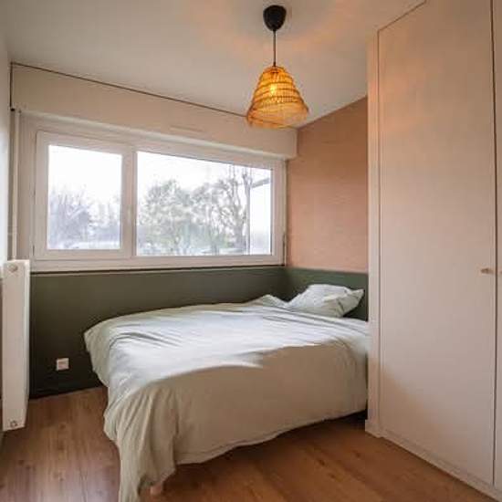 Bonjour à tous! Une Chambre avec salle d'eau privative se libère dans une colocation meublée, refaite à neuf en 2024. Celui ci se situe au rez-de-chaussée d’une petite copropriété de Lormont, juste en face d’un espace vert avec des animaux et une école. L’appartement se compose d’une entrée spacieuse, une cuisine tout équipé (four, lave vaisselle, micro-onde, cafetière, 2 frigos etc…) donnant sur un salon très lumineux avec plusieurs canapés et tv 4k. Cette partie de l’appartement est entièrement ouverte par de grandes baies vitrées donna...