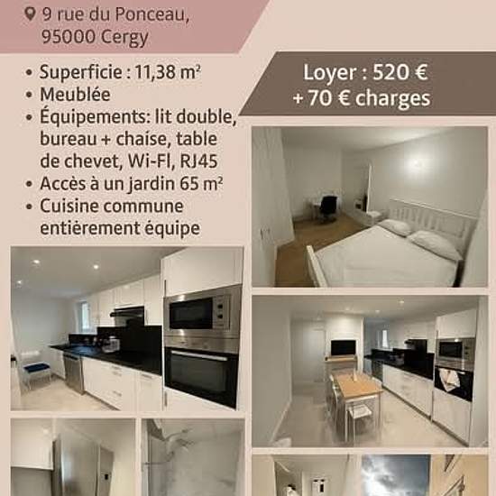 CERGY PREFECTURE / Dispo à partir de Février / Chambre en colocation féminine / 570 eur CC / idéal pour CY-TECH / 4 filles (ans) Les + * Grand dressing pour ranger vos tous vos affaires et valises * Accès direct à l’espace détente au jardin depuis la chambre * Prise RJ45 au niveau des bureaux pour un max débit L'APPARTEMENT ll s'agit d'un T6 de 93m2 au RDC donnant sur un extérieur de 60m2. Entièrement REFAIT A NEUF en 2023, meublé et chauffé, il se compose de: * 5 chambres doubles meublées, avec grands dressings et bureaux, donnant t...