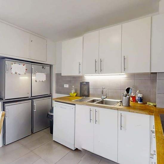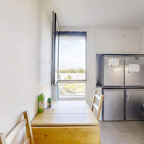 OQORO vous propose cette colocation de 79 m², située dans la commune d'Élancourt au 23 Rue Des Nouveaux Horizons. APPARTEMENT Cette colocation de quatre chambres s'ouvre sur un salon aménagé d'un canapé, d'un meuble TV avec une télévision ainsi que d'un meuble de rangements. La cuisine est équipée de quatre réfrigérateurs, d'un lave-vaisselle, d'un double évier, d'un four, de plaques de cuisson avec une hotte, d'un micro-ondes, d'une table avec deux chaises et de nombreux rangements. L'appartement dispose de deux salles d'eau. La première ...