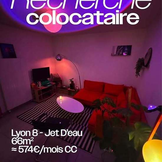 3 pièces - Appartement Rue Saint-Gervais, 69008 Lyon, France Salut Je m’appelle Luca, j’ai 24 ans et je suis directeur artistique dans une agence de pub. Je suis actuellement à la recherche d’un(e) colocataire pour mon appartement situé à Jet d’Eau (Lyon 8). ⸻ L’appartement Il s’agit d’une colocation à deux. Mon colocataire actuel s’en va entre mi-mars et mi-avril (la date exacte n’est pas encore définie). Les points clés : • Appartement lumineux • 66 m² • Immeuble récent, sécurisé, avec ascenseur • Grand balcon (10 m²) • 2 c...
