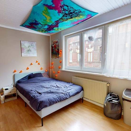 MAISON 6 PIÈCES AVEC TERRASSE Venez découvrir cette colocation de 5 chambres de 115 m² localisée au 17 Rue De La Concorde (Roubaix, 59100). LA CHAMBRE La chambre numéro 2 est meublée par un lit double, un placard de rangement mais aussi un bureau et une chaise. Cette pièce est très lumineuse de part ses trois fenêtres. LES ESPACES COMMUNS Le logement est composé d'une grande cuisine séparée et entièrement équipée : four, micro onde, un lave vaisselle etc. Le séjour dispose de tout le confort nécessaire : canapé, table basse, meuble TV et T...
