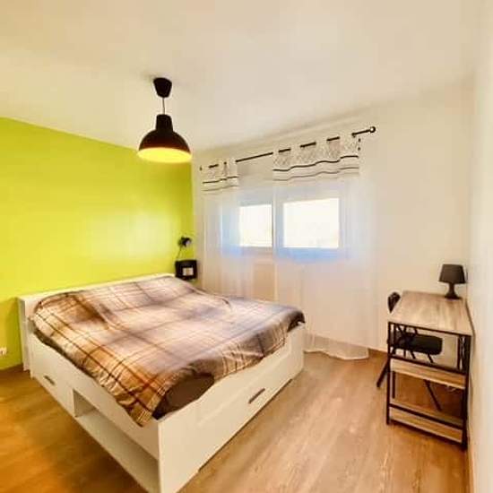 APPARTEMENT 5 PIÈCES AVEC 2 BALCONS Sur le littoral atlantique, en location au 8 Rue Louis Boutin à Saint-Herblain (44800), ayez le coup de cœur pour cette colocation de 4 chambres de 92 m². LA CHAMBRE Cette chambre dispose d'un lit double, d'un bureau avec une chaise ainsi que d'un placard dressing. LES ESPACES COMMUNS Cet appartement de 5 pièces compte un salon avec un canapé, une table à manger ainsi qu'une télévision, trois autres chambres, une cuisine équipée d'un four, d'un lave-vaisselle, d'un micro-ondes ainsi que d'une plaque de c...