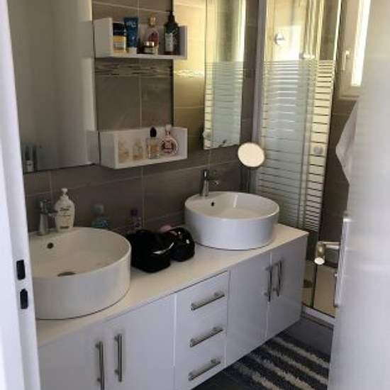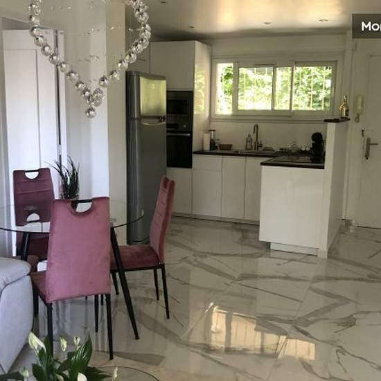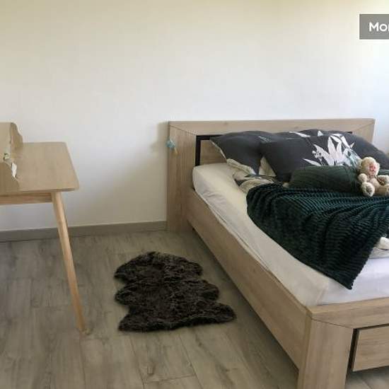 1 bedroom in a magnificent renovated 4 room apartment of 70m². Beautiful living room with corner sofa, glass coffee table, glass dining table, American kitchen, laundry room. 1 beautiful bedroom with double bed and wardrobe. Bathroom with double washbasin, separate toilet. Small private courtyard with artificial grass and table with 2 chairs. Close to all amenities. Services included in rent & charges: Water Electricity Heating Internet Parking The security deposit of 615 € must be paid, before the keys are handed over, by bank transfer.