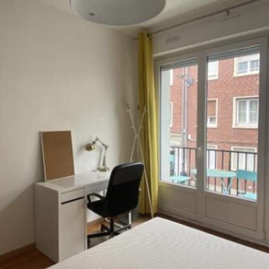 1 room(s) available in a flatshare of 1 rooms in a 127 m2 apartment A room is becoming available in this renovated, high-end flatshare, right in the heart of Amiens city centre. A stone's throw from shops, public transport, and a 15-minute walk from the citadel. Fully equipped: a desk, a double bed with a new mattress, a spacious dressing room, and plenty of storage offer you an ideal setting to study in complete peace. The apartment is quiet and very well laid out, with fully equipped common areas (coffee maker, kettle, kitchen utensils, d...