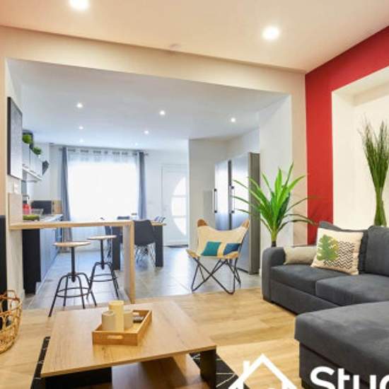 3 chambre(s) libre(s) dans une colocation de 3 chambres dans une maison de 117m2 Venez découvrir cette magnifique maison de 6 chambres, toutes équipées d'une salle de bain privative. Les locataires pourront profiter d'un vaste séjour donnant sur une cuisine toute équipée. Vous trouverez à l'arrière de la maison une petite cour en rez de chaussée avec petites tables de café, ainsi qu'au premier étage, une jolie terrasse ensoleillée. Stationnement gratuit dans le quartier, un hypermarché est situé à moins de 5 minutes à pied. Quotepart de loye...