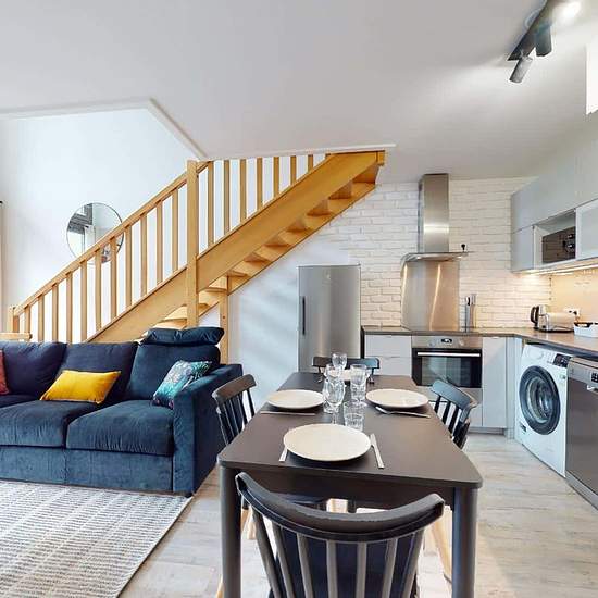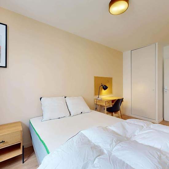 This spacious and comfortable room has been designed for you dear roomie! Practical and functional, the room is equipped with high quality bedding (140x200cm), numerous storage spaces (bed drawers, closet, shelves and night table) and a true office space for your exams or your home office days! All of this in a cheerful and warm atmosphere. In addition, you have access to a shared bathroom. Discover Massy Molière 1, our cosy and freshly renovated contemporary-style apartment. Close to local shops and restaurants, it is easily accessible by t...