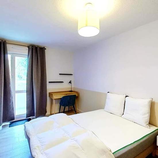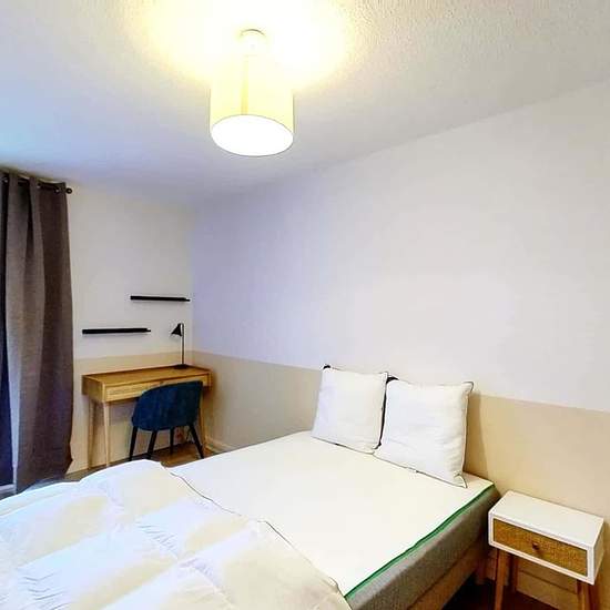 This spacious and comfortable room has been designed for you dear roomie! Practical and functional, the room is equipped with high quality bedding (140x200cm), a beautifull wardrobe, a night table and a true office space for your exams or your home office days! All of this in a cheerful and warm atmosphere. In addition, you have access to a shared bathroom. Beautiful flatshare in Talence ! Discover Talence Peydavant, our cosy and freshly renovated contemporary-style apartment. Close to local shops and restaurants, it is easily accessible...