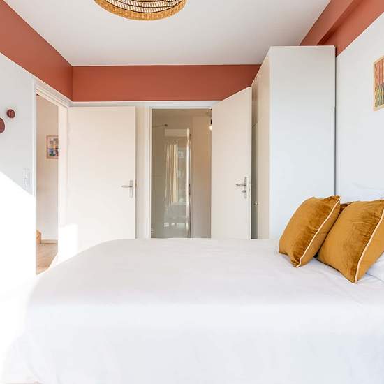 *These pictures are orientative, some variations are possible. This room is situated on the ground floor of a 3-story residence, which features a total of 5 rooms. Conveniently, the shared spaces, including the kitchen and living room, are located on the ground floor level. 140 cm bed • Ensuite bathroom • Shared kitchen Shared balcony/terrace 5 rooms in the appartment • Street window view EXTRA-SERVICES - Add Bedlinen and towels, changed weekly (not included with room) starting at €156.00/month - Bi-weekly cleaning of your private space star...