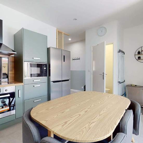MAISON 6 PIÈCES AVEC TERRASSE Venez découvrir cette colocation de 5 chambres de 110 m² localisée au 14 Rue Voltaire à Amiens (80080). LA CHAMBRE La chambre 2 dispose d’un lit double, d’une table de chevet accompagnée d’une lampe, d’un meuble dressing, d’une TV murale, d’un bureau accompagné d’une chaise et enfin, d’une salle de bain privative munie d’une douche, d’un WC, et d’un meuble vasque. LES ESPACES COMMUNS La maison a été entièrement rénovée, et comporte trois niveaux. Elle dispose de cinq chambres, chacune disposant d’une salle de ...