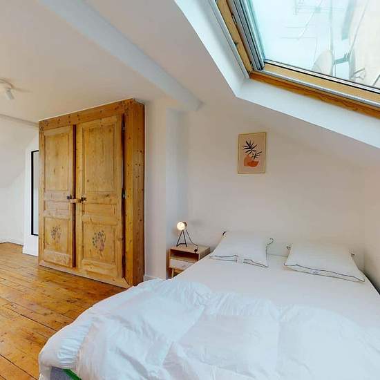 This spacious and comfortable room has been designed for you, dear roomie! Practical and functional, the room is equipped with high-quality bedding (140 x 200 cm), numerous storage spaces (bed drawers, closet, shelves and nightstand) and a true workspace for your exams or home office days! All of this in a cheerful and warm atmosphere. In addition, you have access to a shared bathroom. Discover Noisy Bobigny, our cosy and freshly renovated contemporary-style apartment. Close to local shops and restaurants, it is easily accessible via RER E ...