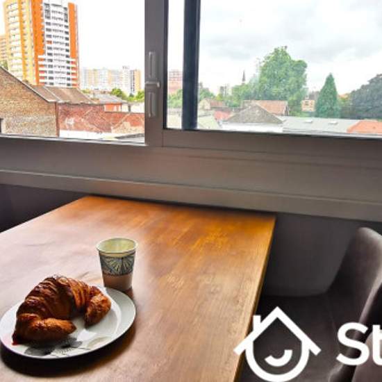 1 chambre(s) libre(s) dans une colocation de 1 chambres dans un appartment de 79m2 ROUBAIX CENTRE PETITE COLOC– Proche ESAAT, ENSAIT, IFSI Plein centre – Avenue des Nations Unies. Petite colocation de 3 personnes : 1 chambre disponible dans un appartement meublé, situé au 3ᵉ et dernier étage. Idéal étudiant ou professionnel en mobilité – location moyenne durée (bail mobilité possible) Salon lumineux avec baie vitrée XXL, ambiance moderne et conviviale. Chambre “Nations Unies” : Lit double, dressing, bureau, fenêtre double vitrage, serrure in...