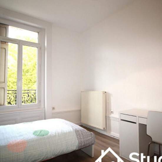 1 room(s) available in a flatshare of 1 rooms in an apartment of 87m2. Spacious 87 m2 apartment in a bourgeois Haussmannian building on the 3rd floor without elevator, fully renovated and reorganized for a flatshare of 3 tenants. Located opposite Place Carnot (no overlooking), you are ideally served by transport: buses and trams T1 and T2 are at the foot (Carnot stop) of the building - Carnot station is 2 minutes away. It has 2 rooms of 14 m2 and 1 room of 20 m2 with a private bathroom - fully furnished (new, quality bedding) with a workspac...