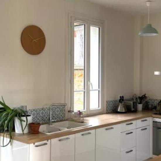 Room for rent for one person in a family millstone house on 4 levels with a garden, in a quiet neightborhood in Saint-Leu-la-Forêt, small peaceful town in Val d'Oise (95). 7-minute walk from the train station (Transilien H) and shops. Direct access to Paris (gare du Nord : 26 minutes) Ermont Eaubonne (ligne J, rer C), Saint-Lazare, Saint-Denis, Villetaneuse Room with bed (140 cm wide) with storage drawers, desk and bedside table. Dressing room, laundry room (washing machine and dryer), shower, toilets and kitchen to share. Presence of two ch...