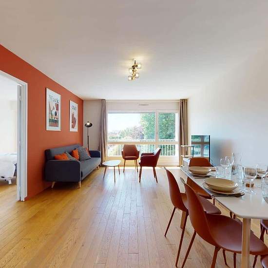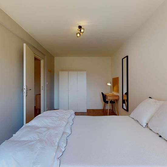 This spacious and comfortable room has been designed for you dear roomie! Practical and functional, the room is equipped with high quality bedding (140x200cm), numerous storage spaces (bed drawers, closet, shelves and night table) and a true office space for your exams or your home office days! All of this in a cheerful and warm atmosphere. In addition, you have access to a shared bathroom. Discover Lille Marais, our cosy and freshly renovated contemporary-style apartment. Close to local shops and restaurants, it is easily accessible by Metr...