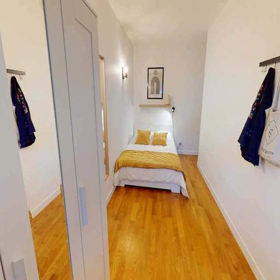 Inquilini all'interno della struttura / Tenants inside the building: 1) Female, Student, 21 2) Female, Student, 22 3) Male, Worker, 27 4) Female, Worker, 26 5) Male, Student, 18 EN This lovely private bedroom in a fully equipped, furnished and all-inclusive flatshare in Lyon is a mix of comfort and design. It has got household furnishings, including a bed with pillows and duvet What is missing is your things to feel at home! The room can be locked if you need intimacy. The flatshare can be found in the Bellecour - Presqu'île neighborhood, in...