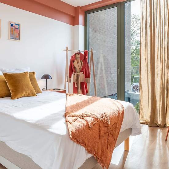 *These pictures are orientative, some variations are possible. This room is situated on the ground floor of a 3-story residence, which features a total of 5 rooms. Conveniently, the shared spaces, including the kitchen and living room, are located on the ground floor level. 140 cm bed • Ensuite bathroom • Shared kitchen Shared balcony/terrace 5 rooms in the appartment • Street window view EXTRA-SERVICES - Add Bedlinen and towels, changed weekly (not included with room) starting at €156.00/month - Bi-weekly cleaning of your private space star...