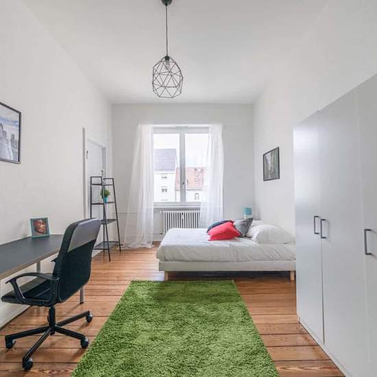 [FR] Très grande chambre de 18m², entièrement meublée. Elle dispose d’un lit double (140x190) accompagné d'une table de chevet avec lampe. Un espace de travail est disponible, composé d'un bureau avec chaise et lampe. La chambre propose également plusieurs rangements : une armoire avec penderie et une étagère. Situé dans le quartier Kable, cet appartement de 133m² bénéficie d’un emplacement idéal, à deux pas du Parc du Contades et de la station République. Plusieurs commodités sont disponibles à proximité : commerces, pharmacies, espaces ver...