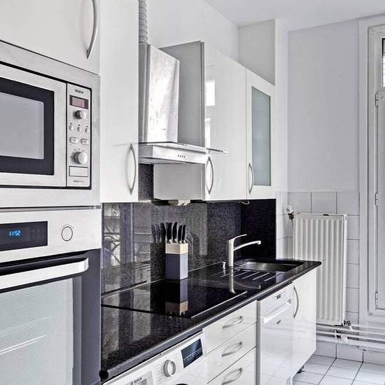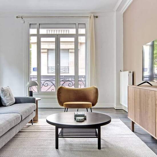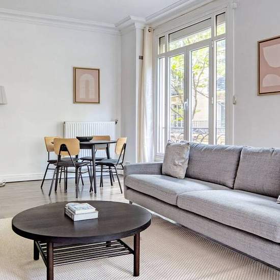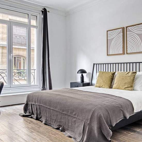 Furnished 2-bedroom apartment for rent in Paris. The property is on the 1st floor of a building with an elevator.