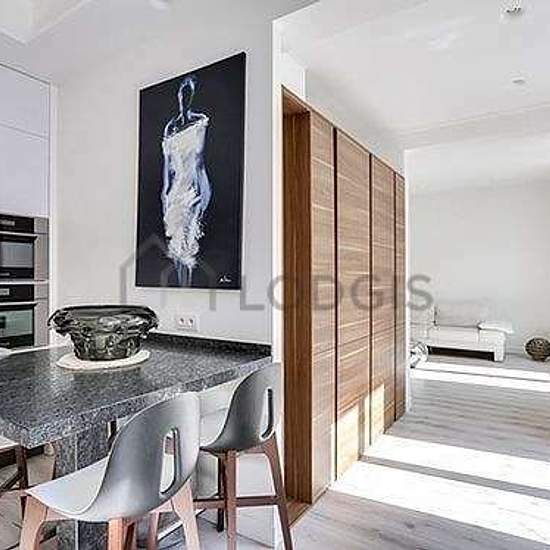 This prestigious 80 m² apartment is located on Rue Berlioz, in a residential section of the 16th district of Paris. Composed of 3 rooms, including 2 bedrooms, this furnished apartment rental can accommodate up to 4 people. This very bright and very peaceful apartment is located on the 1st floor - FR standard (no lift). It offers a terrace. It is also equipped with all you need to feel like a parisian including Internet included, Vacuum cleaner, Iron, table linens, dish towels, etc. The apartment is accessible by Paris public transportation (...