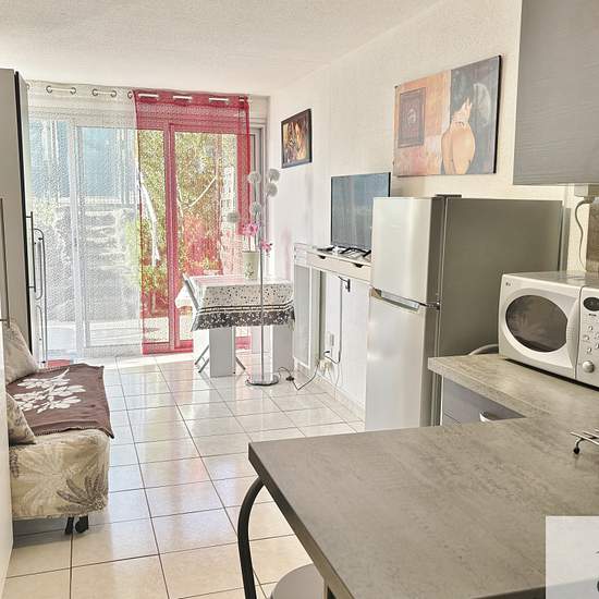 Only a few steps from the Port of Cap d'Agde, within a secure residence with a swimming pool, come and discover this lovely furnished one-bedroom (T2) apartment of approximately 29 m2, on the garden level, with a private parking space, arranged as follows: - living room of 17 m2, open-plan kitchen onto the living room, all opening onto a pleasant 15 m2 terrace, bedroom of 9 m2, shower room with WC. References required. Show phone number