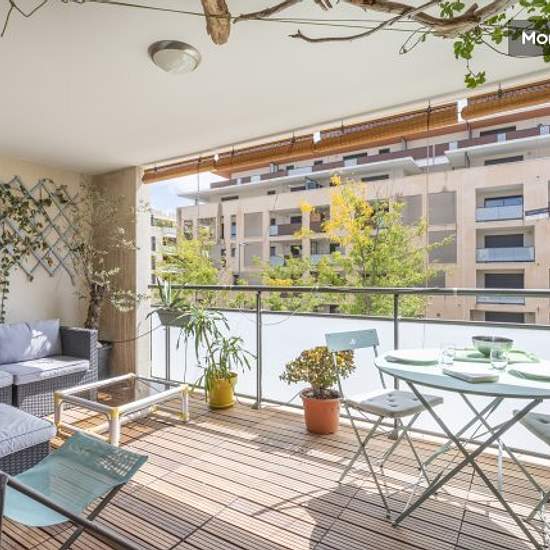 Discover this elegant, well-equipped flat, located on the first floor with lift, offering charming views over a pedestrian promenade. Enjoy a 15 m² south-facing terrace with bamboo blinds and climbing plants, ideal for relaxing. With a surface area of 40 m², this rental comprises: - a lovely sunny 15 m² south-facing terrace, embellished with bamboo blinds, climbing plants and elegant driftwood decoration, perfect for relaxing outdoors, - a lovely, light-filled lounge, - a fully-equipped open-plan kitchen (coffee machine, toaster, blender, ke...