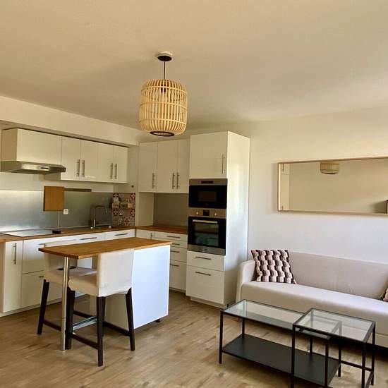 Très bel appartement de 41,12 m², en rez-de-jardin, situé dans un environnement calme et sécurisé. Il se compose d’un séjour lumineux avec cuisine ouverte et bien équipée, d’une chambre avec placard et salle d’eau, d’un WC séparé et d’un jardin privatif de 82 m². La résidence dispose d’une piscine et d’un terrain de tennis. Une place de parking privative en extérieur est incluse. Chauffage individuel électrique par cumulus. Double vitrage, rangements et lave-linge inclus. Disponible immédiatement. Loyer TTC : 1 262,00 € (1 112,00 € + 150,00 ...