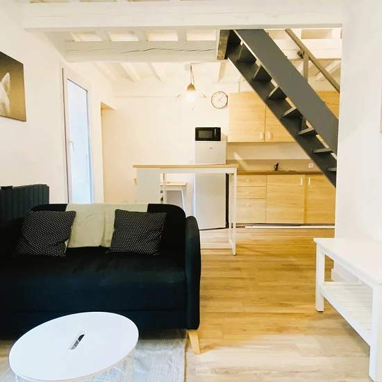 Dakey's Immobilier vous propose A Louer Appartement T1 Meublé en duplex dernier étage AIX en Provence 13100 Hypercentre avec deux extérieurs à 5 mins du Cours Mirabeau Les matériaux et la décoration ont été soigneusement sélectionnés, par ailleurs il bénéficie d'une belle luminosité et de beaux volumes. L'appartement se situe dans une rue calme derrière le cours Sextius. Séjour : - Canapé - Table basse - Tapis - Meuble TV - Terrasse Chambre (en haut) : - Lit 2 places 140x200 - Housse de lit protectrice - Rangements - Salle d'eau et lave-ling...