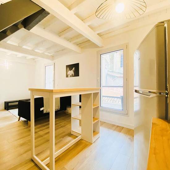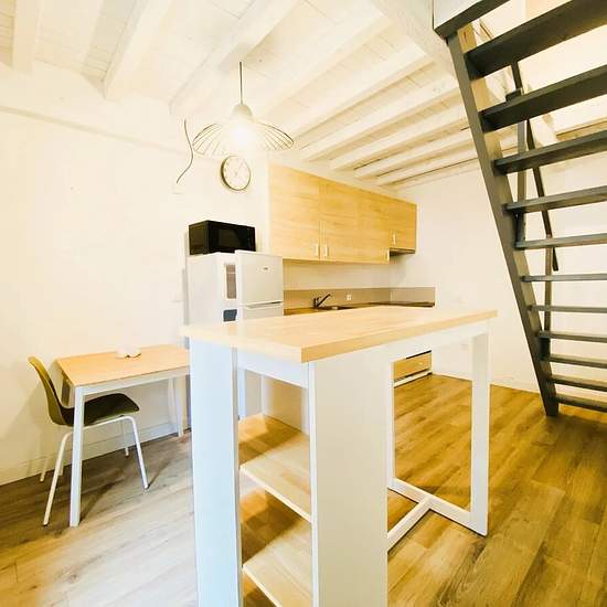 Dakey's Immobilier vous propose A Louer Appartement T1 Meublé en duplex dernier étage AIX en Provence 13100 Hypercentre avec deux extérieurs à 5 mins du Cours Mirabeau Les matériaux et la décoration ont été soigneusement sélectionnés, par ailleurs il bénéficie d'une belle luminosité et de beaux volumes. L’appartement se situe dans une rue calme derrière le cours Sextius. Séjour : - Canapé - Table basse - Tapis - Meuble TV - Terrasse Chambre (en haut) : - Lit 2 places 140x200 - Housse de lit protectrice - Rangements - Salle d'eau et lave-ling...
