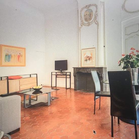 Appartement de 63 m² à louer sur Aix-en-Provence Dans un très bel immeuble Aixois du centre ville proche place des Prêcheurs, nous louons un appartement de caractère. Superficie 63 m². hauteur sous plafond 3,50 m Au premier niveau -Grand salon avec deux fenêtres sur rue -Chambre avec rangement. Lit 180 Au second niveau WC avec Lave mains Salle d'eau avec douche Lave linge. Cuisine : Lave vaisselle Four traditionnel Four à micro-ondes Réfrigérateur / congélateur Cafetière électrique Bouilloire électrique Grille pain Autres équipements : Aspir...