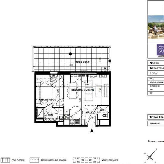 Aix la duranne résidence vela bianca située dans une résidence neuve livraison décembre 2025), appartement type 2 de 43.85 m² en rez de chaussée surélevé, comprenant un grand séjour cuisine ouverte aménagée, une chambre, une salld 'eau et wc, belle terrasse de 22 m², place de parking en sous sol. Disponible le 10 décembre 2025. Loyer : 950€ charges : 80€ dépot de garantie : 950€ honoraires : 570€.