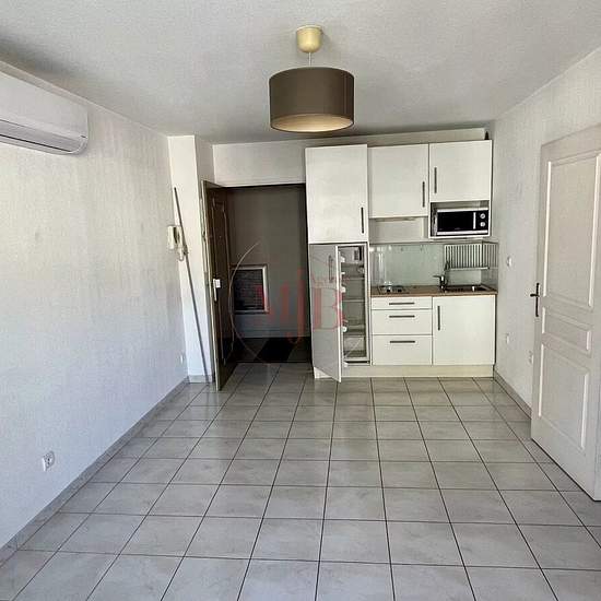 Aix en Provence. Quartier Allées provençales. Au 2eme étage d'un immeuble situé plein cœur de ville, avec ascenseur, appartement 2 pièces de 32,12 m2 (loi Boutin) avec terrasse, le tout en bon état. Pièce principale avec cuisine ouverte équipée, une chambre séparée avec placard, salle de douche et W.C. Présence d'une climatisation dans le salon. Loyer mensuel: 725 euros + 65 euros provisions sur charges. Dépôt de garantie: 725 euros. Location vide. Honoraires charge locataire: 417,56 euros (321,20 euros constitution du dossier, visite, rédac...