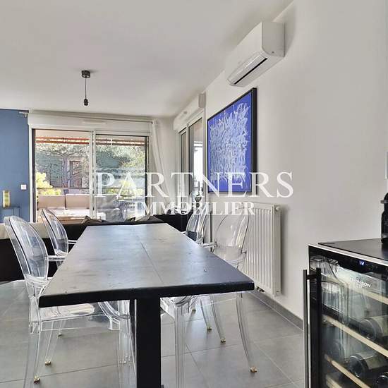 Appartement T2 57m² avec terrasse de 35 m² - 2 stationnements Partners Immobilier vous présente dans le quartier de Saint-Mitre, au sein de la résidence Le Jardin Mahonnia, cet appartement T2 dans un immeuble de standing au calme. Il se compose d'une entrée avec rangement, d'un salon-séjour avec cuisine équipée donnant sur une terrasse de 35 m². La partie nuit comprend une chambre avec un grand dressing, une salle d'eau et des WC indépendants. L'appartement est climatisé et dispose de deux places de stationnement en sous-sol. Un bien simple,...