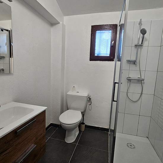 AIX LES MILLES Situé en pleine campagne, dans un environnement très calme et à proximité du pôle d'activité, maison mitoyenne type 2 de 44.14 m² avec jardinet (barbecue et four à pizaa), comprenant un séjour / cuisine ouverte et aménagée de 22 m², 1 chambre de 10 m², un bureau de 7 m² et une salle d'eau / wc. Cuisine et salle d'eau récente. Clim réversible et Place de parking à disposition. Loyer : 806 euros Caution : 806 euros charges 40 euros (entretien filtres et lampe uv) Euros .