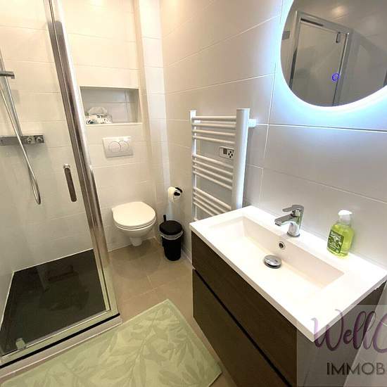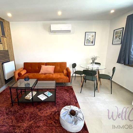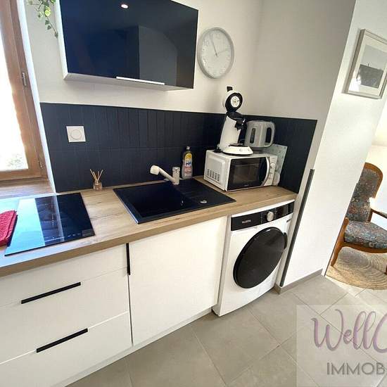 AIX LES BAINS Coeur de ville au calme et avec parking privatif, Appartement type 1 bis meublé à louer en BAIL MOBILITE jusqu'au 30 / 06 / 2026. Surface habitable 37.04 m² / surface au sol 44.87 m². Ce logement cosy, refait à neuf et tout équipé, est situé au dernier étage d'une petite résidence typique du centre. Il offre une jolie pièce de vie, une cuisine équipée, un coin chambre mansardé, une pièce annexe avec babyfoot, un dressing ainsi qu'une salle d'eau équipée avec WC. La climatisation, l'eau froide, l'eau chaude, le chauffage et les ...