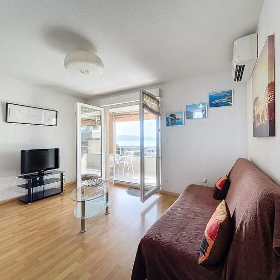 MAX IMMOBILIER propose à la location cet appartement type F2 meublé, de 39.31m² situé au 1er étage avec ascenseur. Il se compose d’une entrée, une salle d’eau/WC, une chambre de 11m², un séjour de 15m² et un coin cuisine. L’appartement est entièrement meublé. Une terrasse de 18m², orientée SUD offrant une belle vue mer sans vis-à-vis, est protégée par 2 stores bannes électriques. PRESTATIONS DU F2 MEUBLÉ MURO : Parquet flottant Climatisation réversible séjour et chambre Huisserie PVC double vitrage Volet roulant électrique Placards aménagés ...