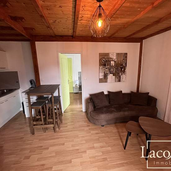 A Albertville, dans le quartier de Saint-Sigismond, nous vous proposons à la location ce charmant T2 meublé de 28.40 m2. Vous disposerez d'un espace séjour avec sa kitchenette, une chambre séparée et d'une salle d'eau. En annexe, vous bénéficierez de la jouissance privative d'un balcon et d'une place de parking. Il s'agit d'un appartement au premier étage (sans ascenseur) dans une petite copropriété de deux étages. Pour ce qui est du montant du loyer, il est fixé à 505 € par mois charges comprises. Honoraires d'agence à charge locataire : 25...