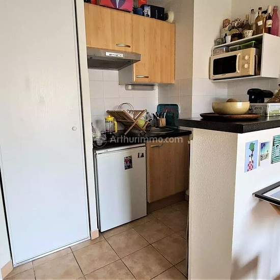 ALBI Atlantis. Appartement T2 de 32 m² dans résidence récente sécurisée avec piscine. Un séjour avec cuisine américaine aménagée et semi-équipée (plaque vitrocéramique, frigo top et hotte), une chambre avec placard intégré, une salle de bains, un WC séparé. Loggia et place de parking privative. Chauffage électrique. Disponible début Avril.