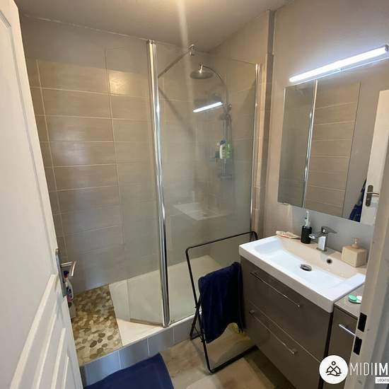 Au deuxième étage d'une résidence calme et sécurisée, appartement T2 de 43m² habitables meublé. L'entrée s'ouvre sur une pièce de vie lumineuse, cet espace est complété par une cuisine aménagée et entièrement équipée d'une plaque électrique 4 feux, d'une hotte, d'un four, d'un frigo et d'un lave linge. Dans la chambre un placard de rangement, une salle d'eau avec un meuble vasque et un toilette séparée. Une place de parking privative, et un balcon. Disponible : Immédiatement Chauffage : Electrique Menuiseries : Double vitrage Loyer : 580,00?...